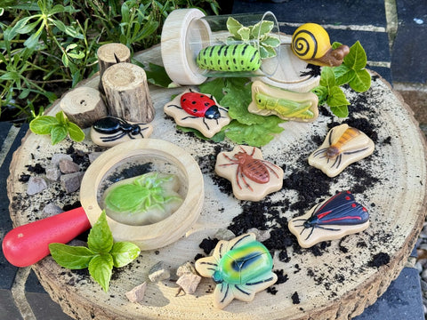 Children will enjoy sorting and comparing the bugs, enhancing their observation skills and expanding their vocabulary. The engraved elements can be felt as well as seen, and children will enjoy pressing the bugs into playdough to create detailed imprints.