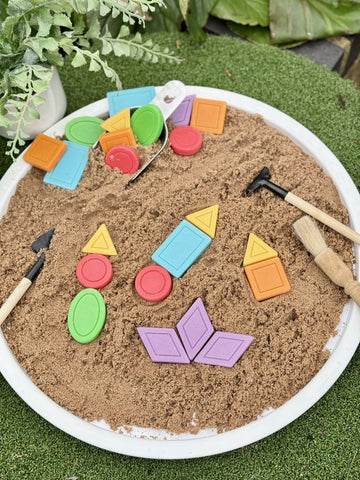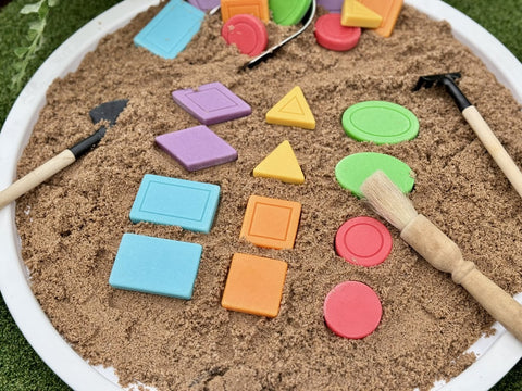 Each shape stone is smooth on one side and engraved on the other, perfect for sensory feedback and imprinting patterns or creating mosaics in play dough. Made from a durable stone mix, they’re a great addition to sand, water and mud play!