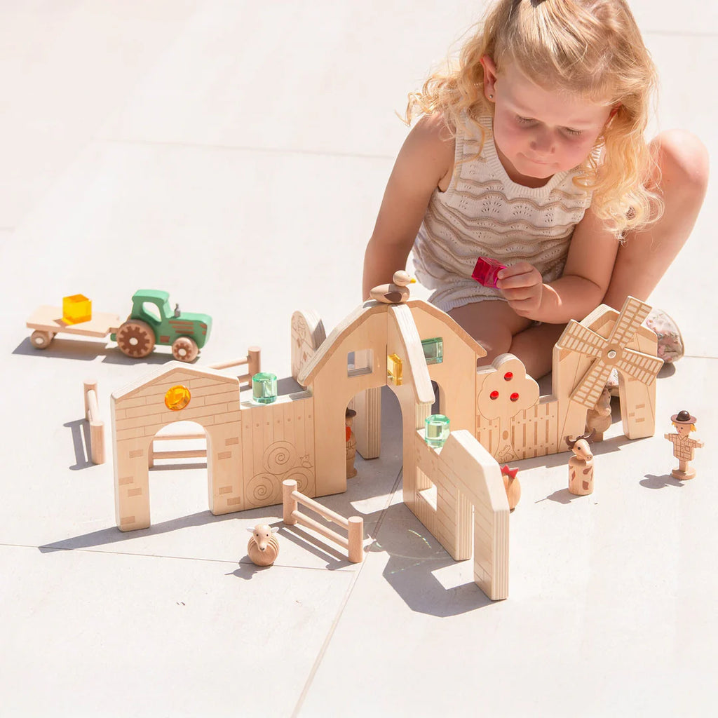 Perfect for weaving elaborate farmyard narratives, these beautifully proportioned figures inspire storytelling, role-play adventures and collaborative play scenarios. Seamlessly compatible with tickit's Farm Discovery Dividers, Wooden Domestic Animal sets and Wooden People Who Help Us Blocks, this collection becomes the heart of expansive small world play environments. A treasured resource that celebrates rural life whilst nurturing creativity, language development and imaginative expression.
