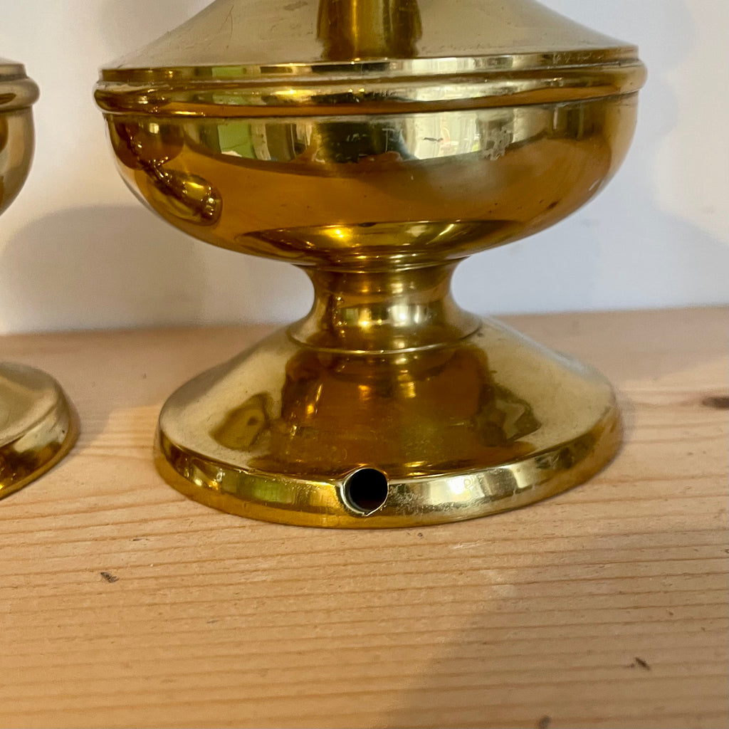 These have been converted from electric lamps, see the hole in the photos showing where the flex used to be, hence price.